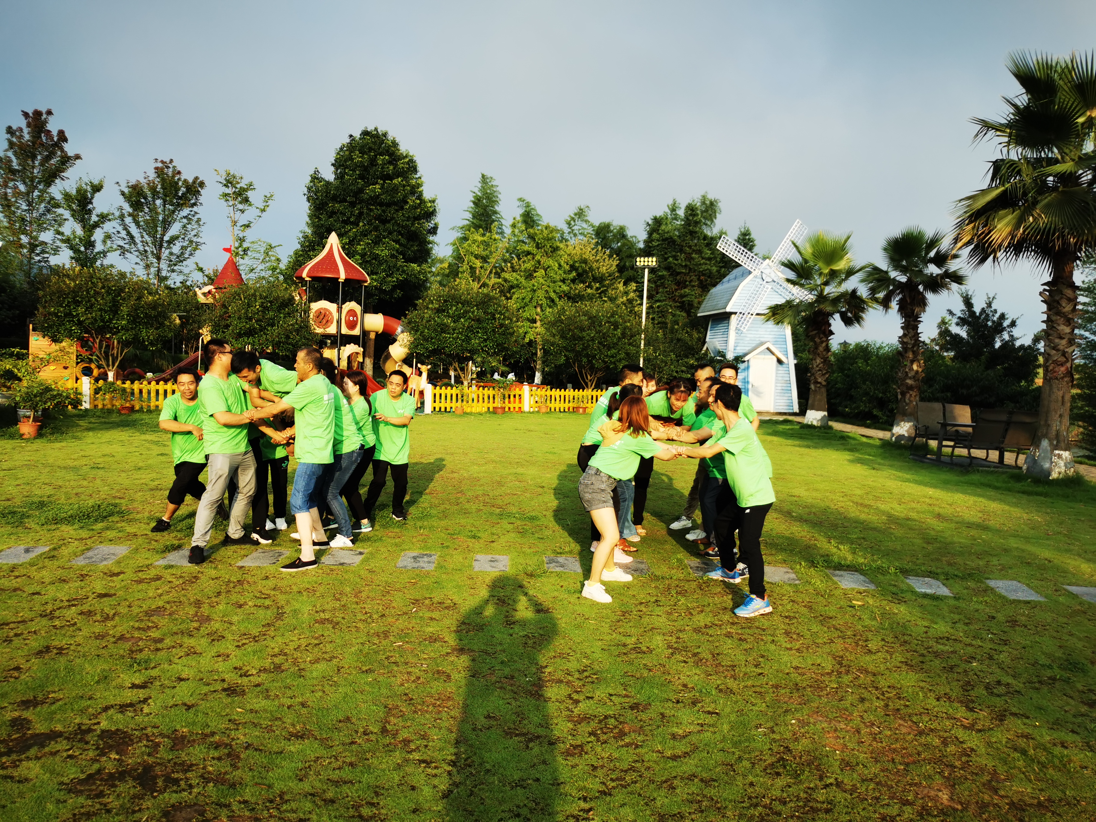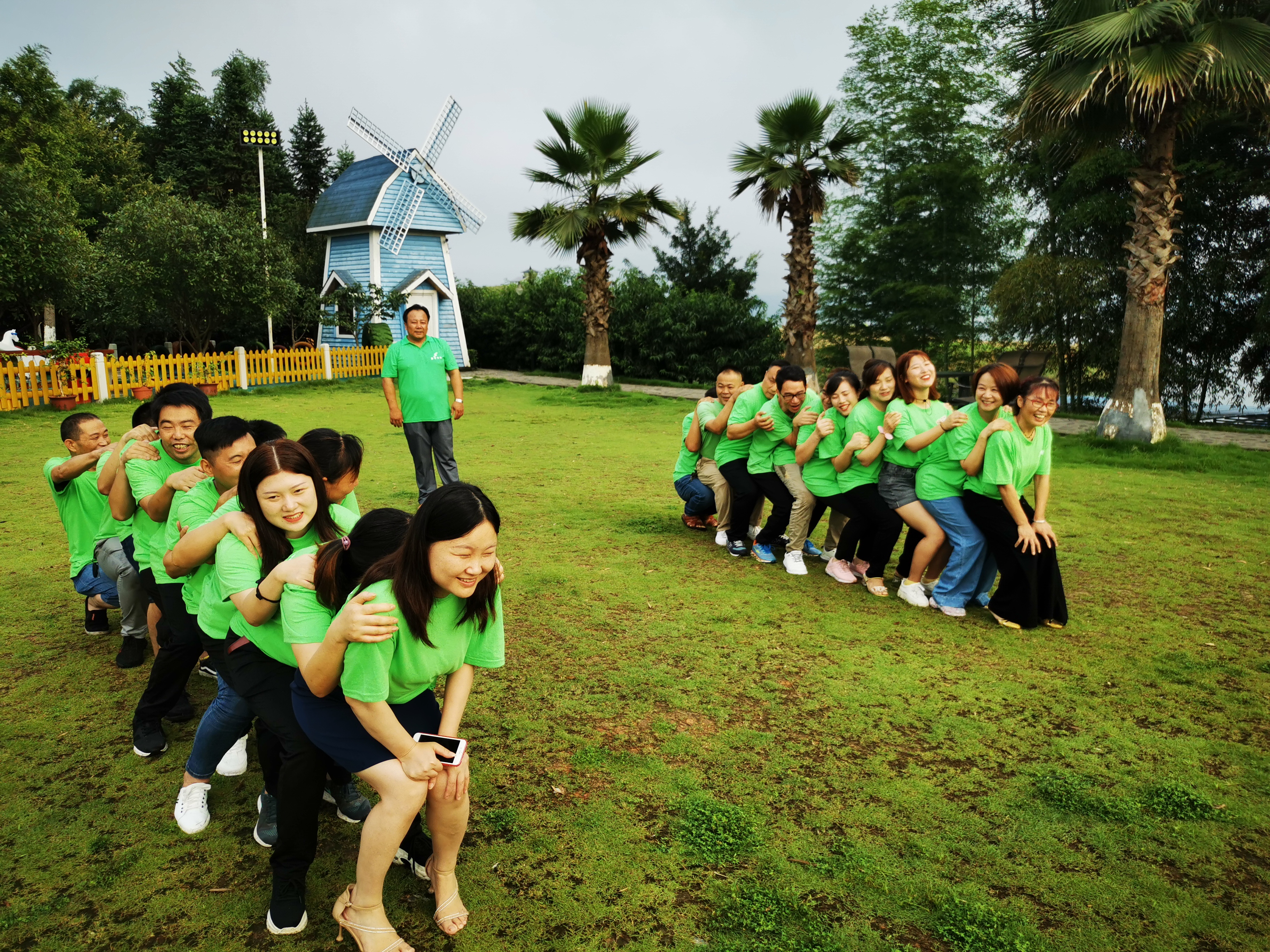 在歡聲笑語中我們進行了第二個活動項目—《人椅》,此項目主要培養(yǎng)團隊協作、強化責任的意識,把自己的后背交給一起戰(zhàn)斗的伙伴,團隊之間的信任是這個項目的關鍵,兩隊在這個項目中,表現出來對同事之間的信任,讓大家很順利的全部完成比賽。