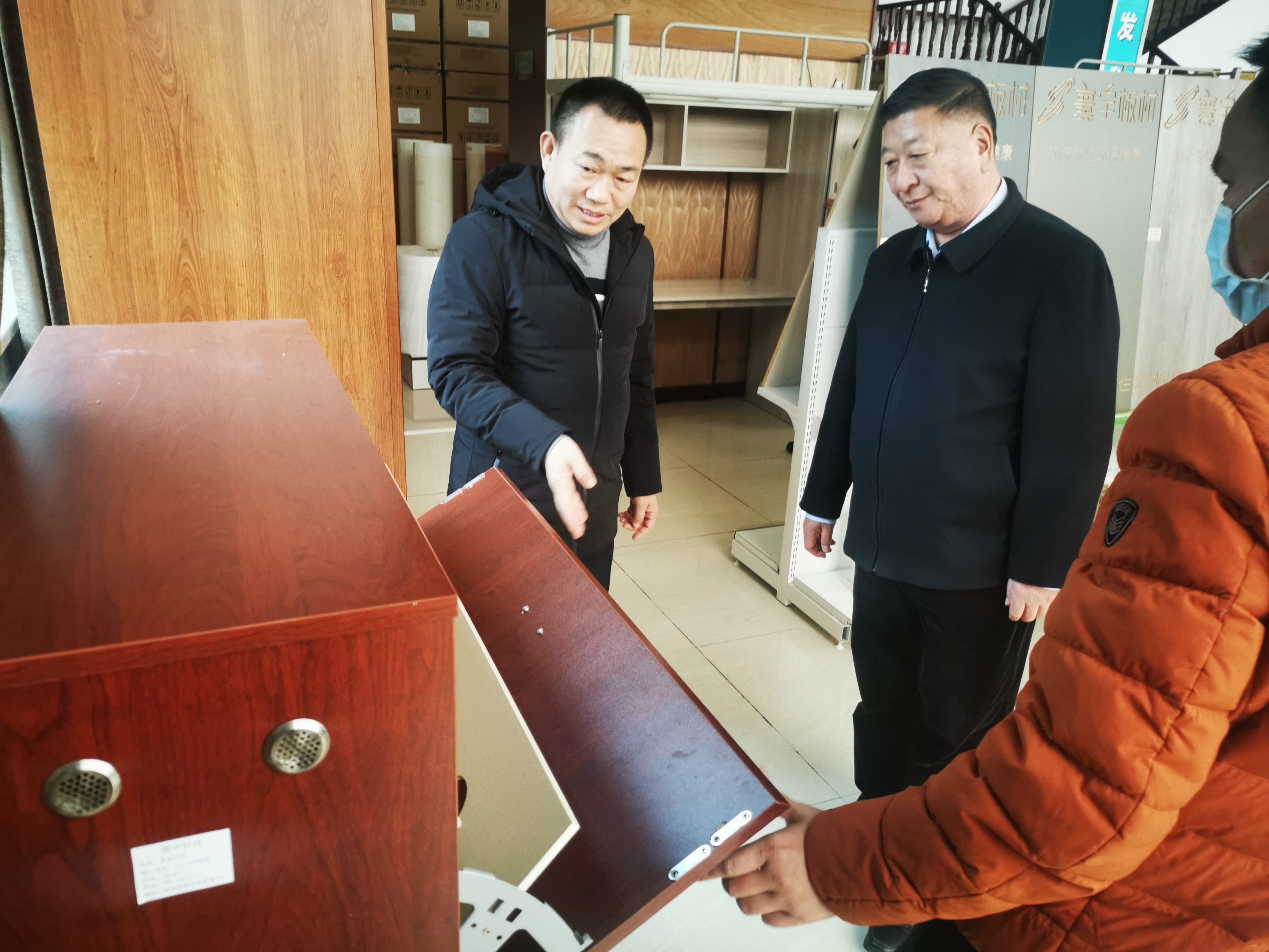 12月17日,中國林業(yè)物資有限公司總經(jīng)理、黨委副書記馬煥榮在中林集團通道縣掛職副縣長朱新勇、市財政局副局長向發(fā)棟陪同下,到湖南寰宇新材料科技股份有限公司調(diào)研指導(dǎo)工作。