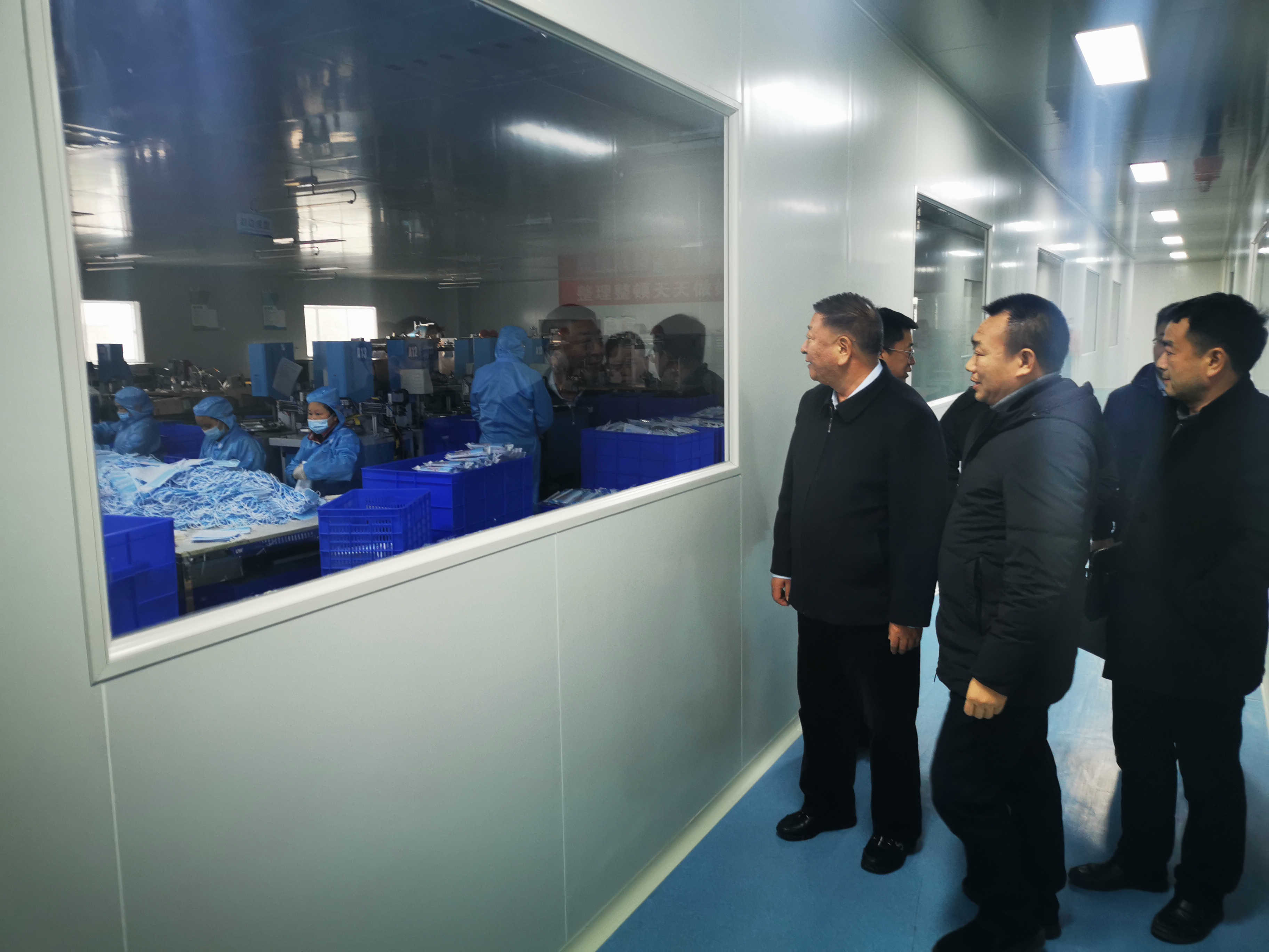 期間,領(lǐng)導(dǎo)一行在董事長周祚新的帶領(lǐng)下,參觀了我司醫(yī)療器械產(chǎn)品無塵生產(chǎn)車間,在周董的介紹下了解到,寰宇股份是懷化唯一一家醫(yī)用防護服生產(chǎn)、擁有無菌防護產(chǎn)品生產(chǎn)資質(zhì)、醫(yī)用防護口罩、醫(yī)用防護服承擔湖南省應(yīng)急防疫物資能力建設(shè)項目的企業(yè)。對于寰宇能在疫情防控期間為社會做出的貢獻,馬煥榮總經(jīng)理表達出了深深的敬佩之情。