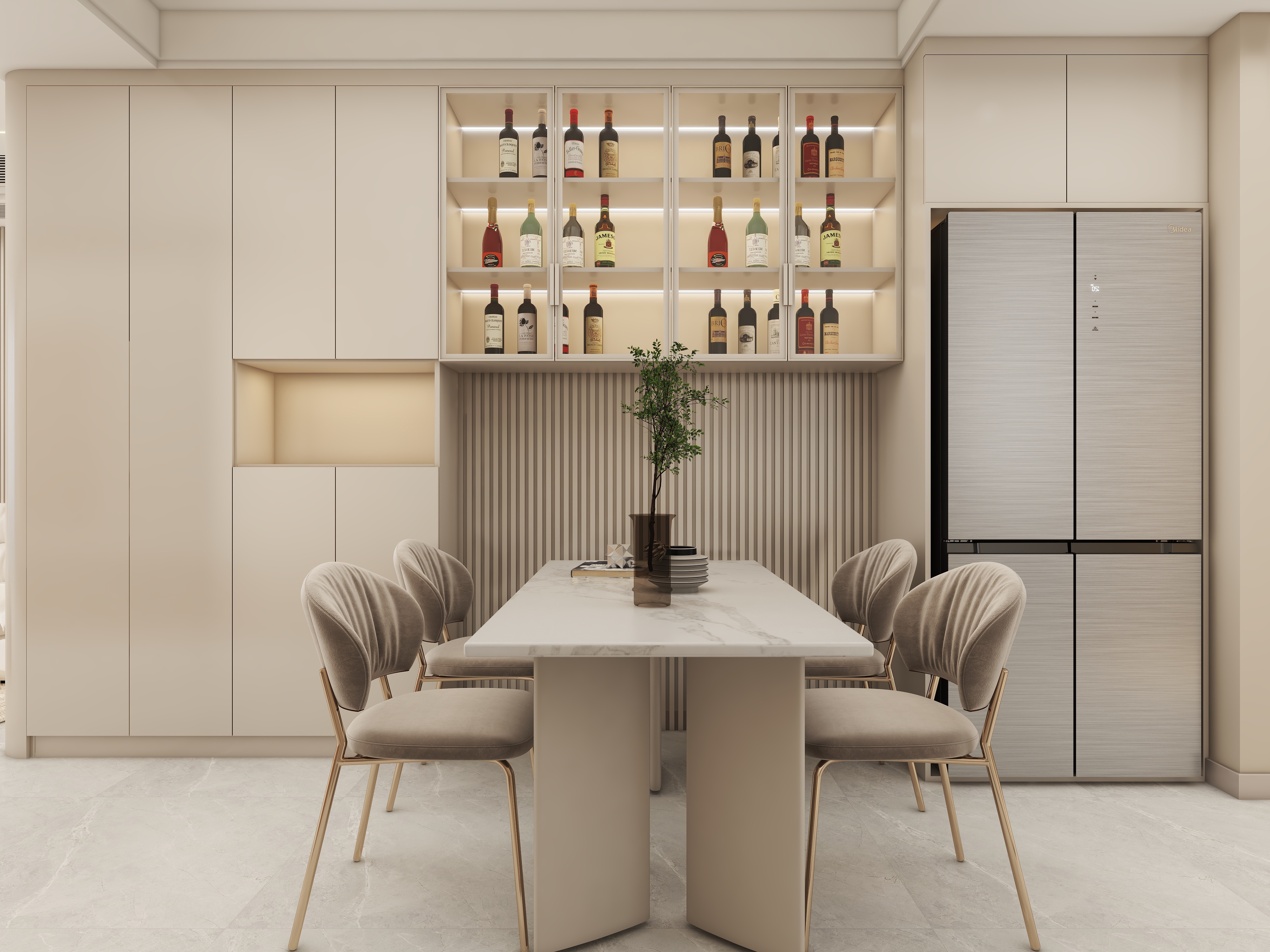 新中式風(fēng)格強(qiáng)調(diào)格調(diào)淡雅有內(nèi)涵,背景色一般不會選擇過于清亮的顏色,而是多用黑白灰棕這幾個色調(diào)(淺色調(diào)),這樣也可以很好的襯托顏色較深的中式家具,起到色彩的對沖,視覺感更好。
